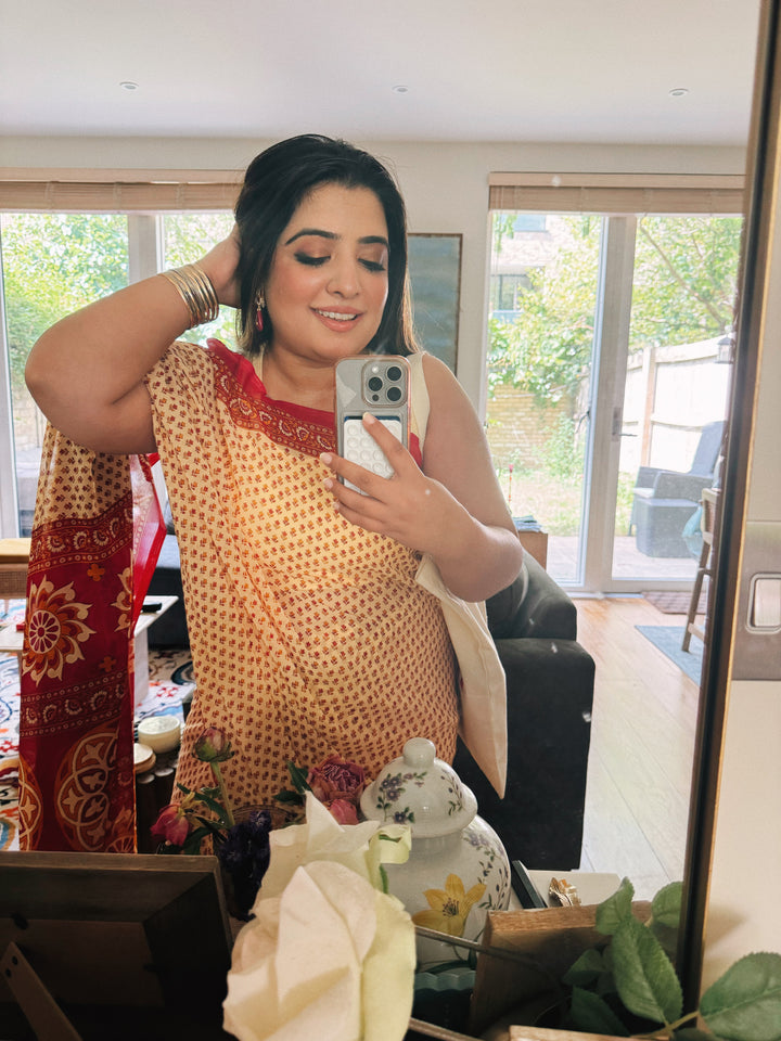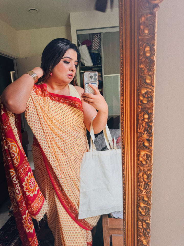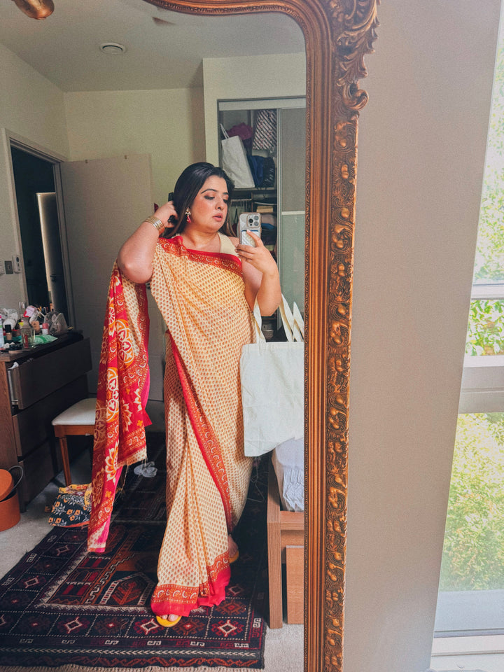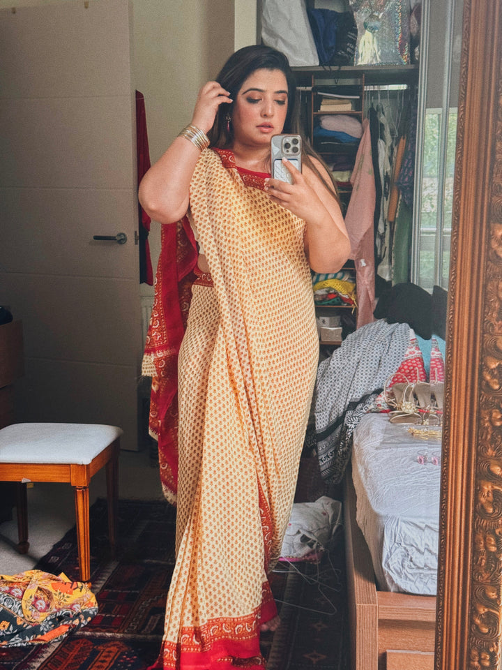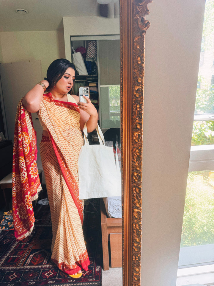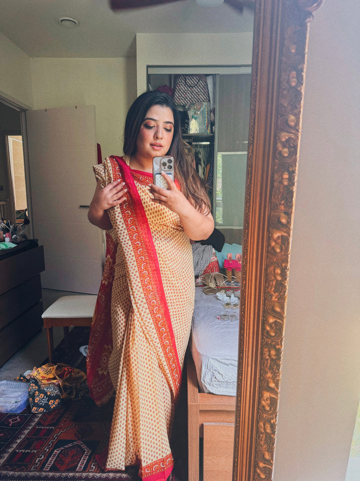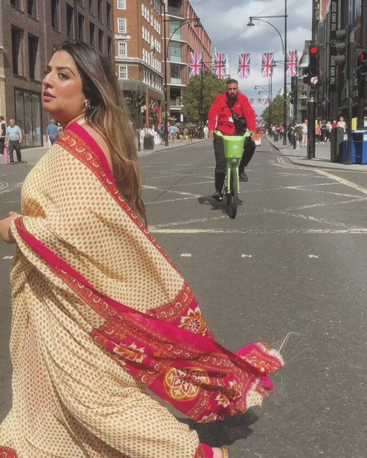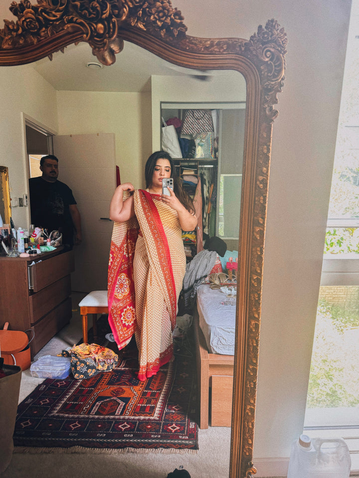 Blouse: Unstitched, included in sari. (maham is wearing her own blouse in pictures)