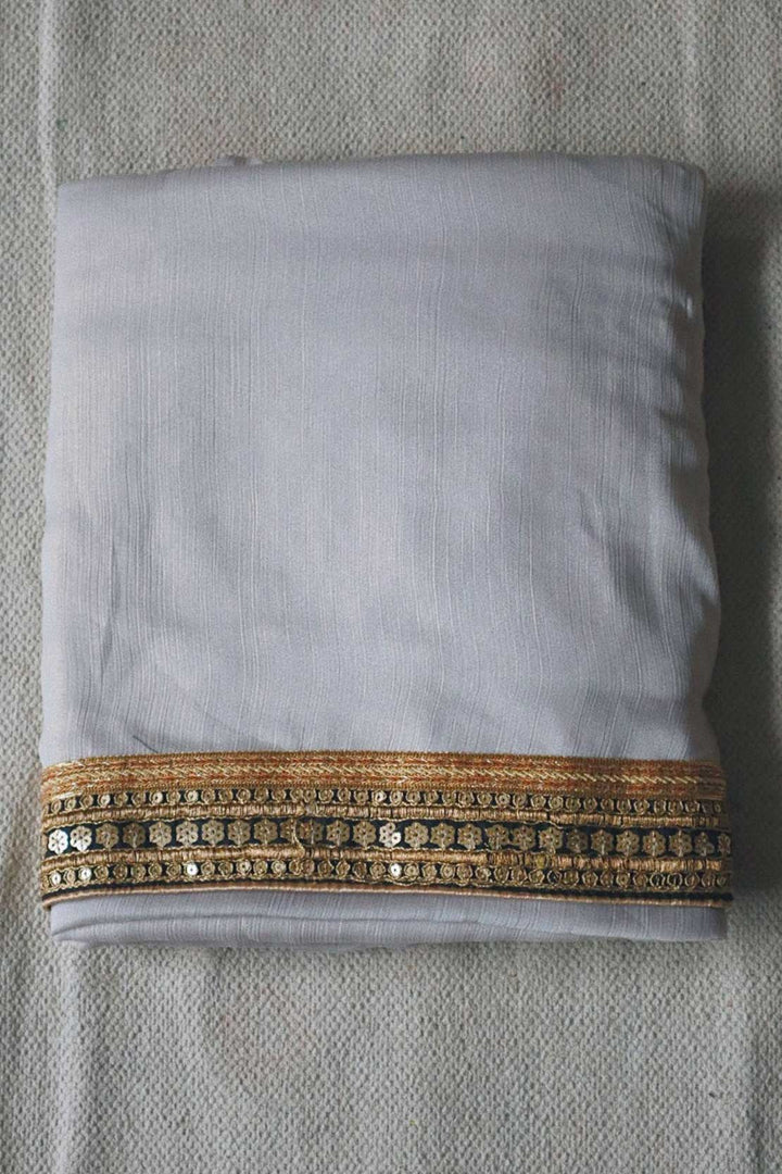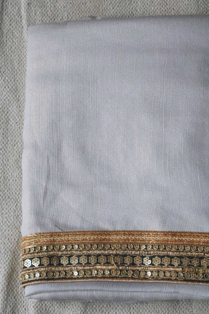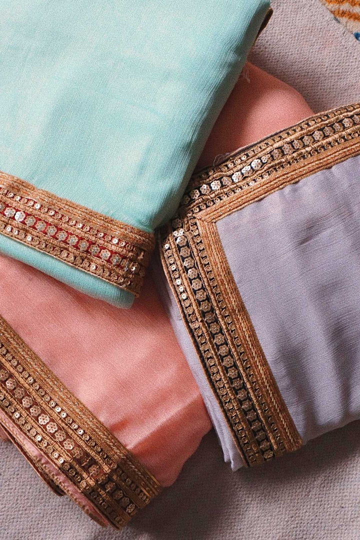 Festive chiffon sari. Shimmery material, with embroidered border. Border contains zari, tilla and sequin work.