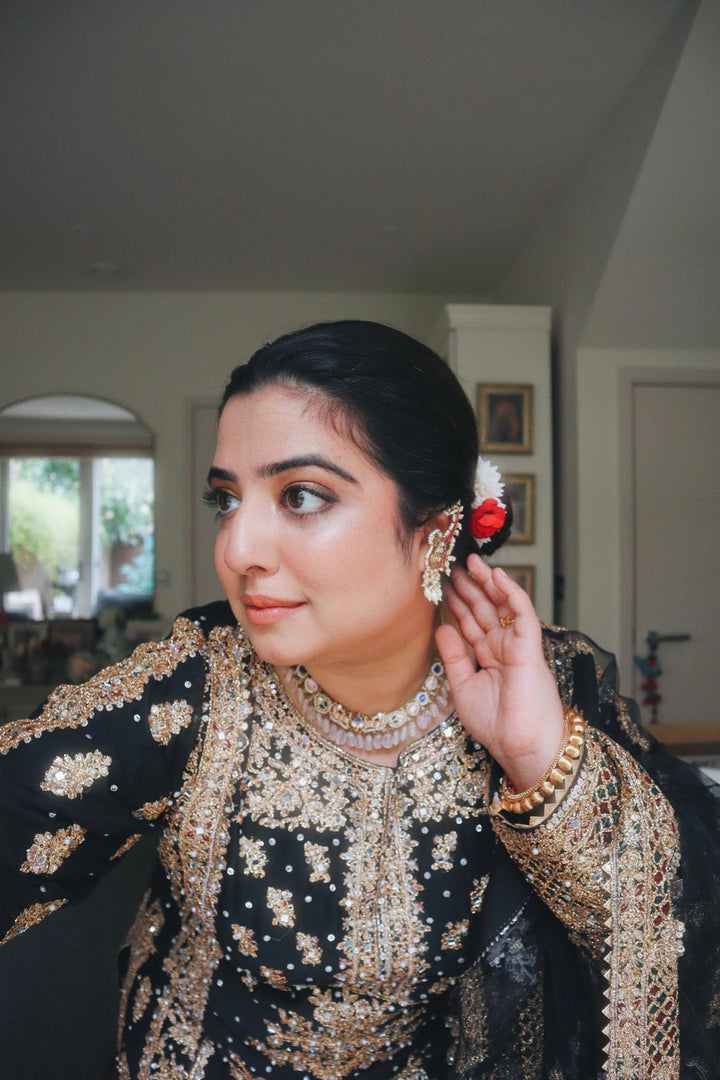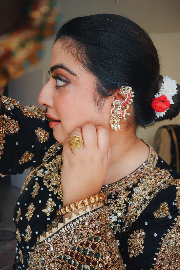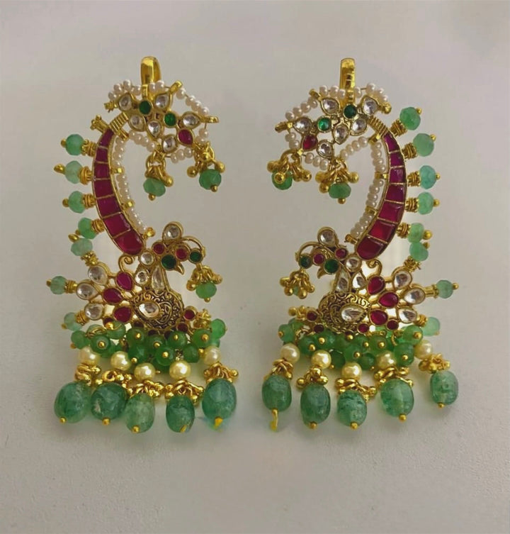 Handcrafted delicate and high quality stones used: gold plated with premium kundan and emerald stone.