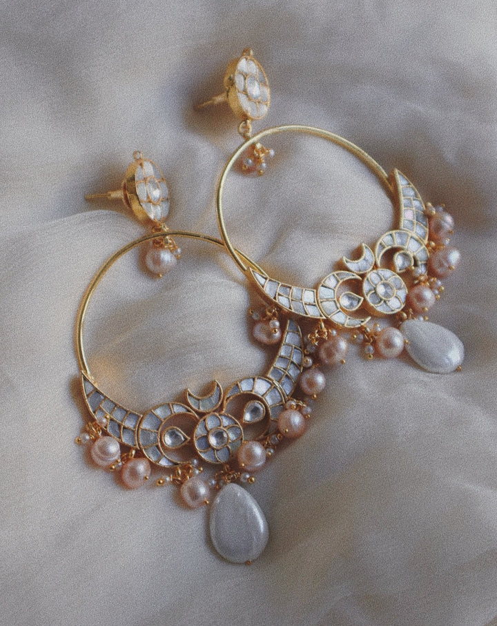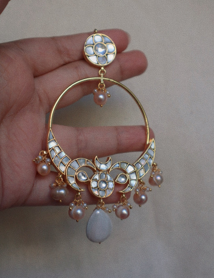 Handcrafted delicate and high quality stones used: gold plated with premium kundan and real mother of pearl.
