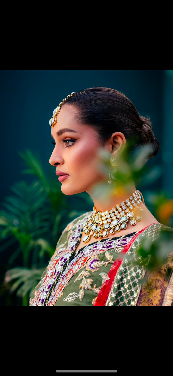 Handcrafted polki stone choker, gold plated with premium kundan, highest quality semi precious stones.