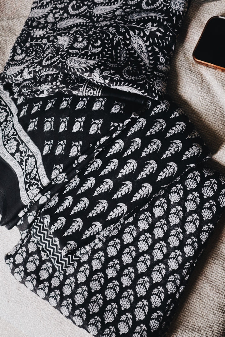 Unstitched Sari, Blouse fabric attached with sari.Â