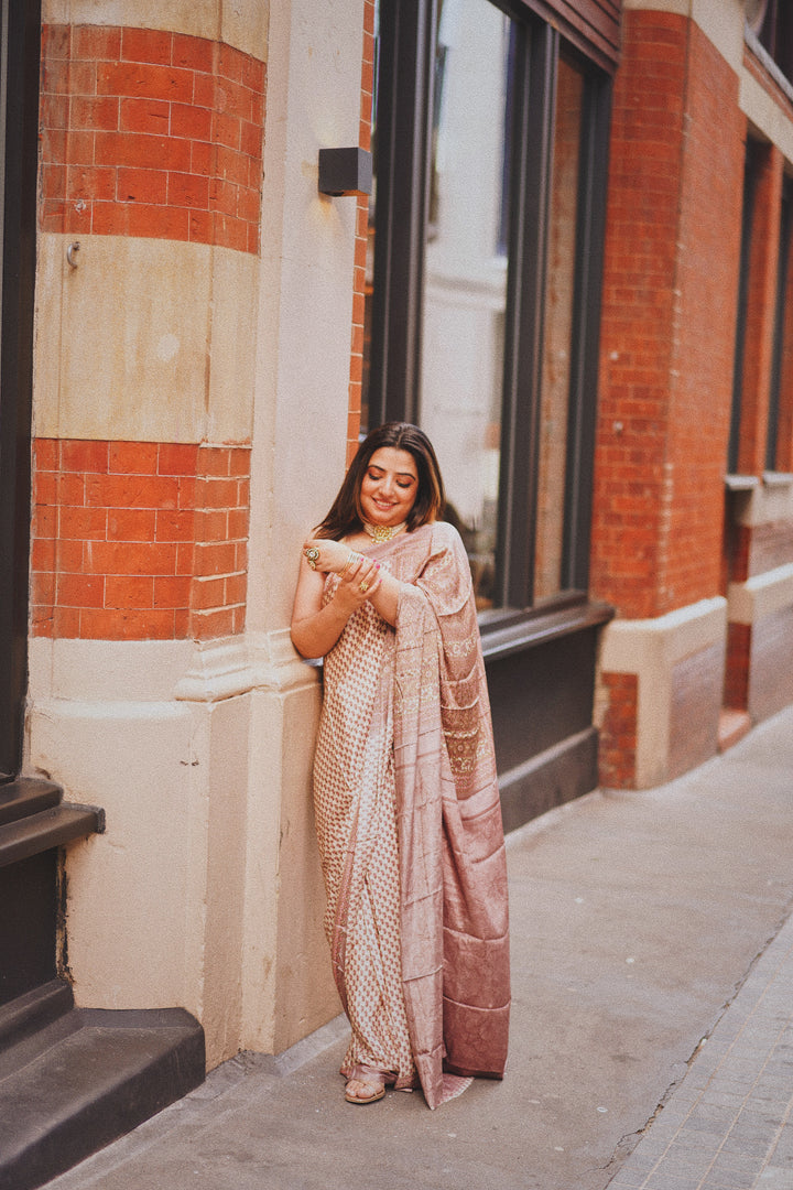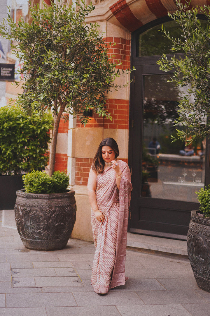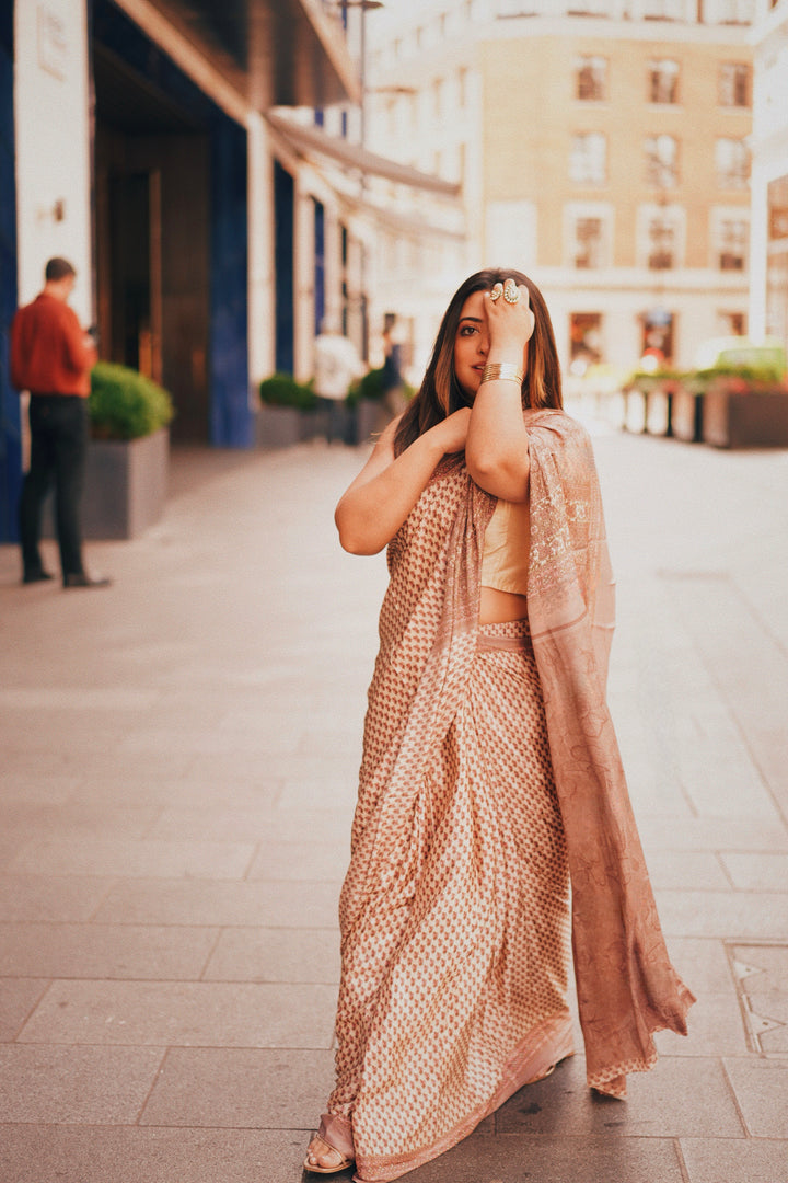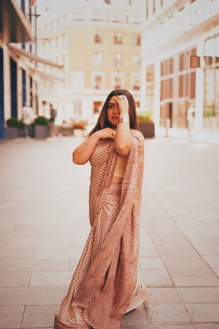 Silk sari, perfect for a day time event. ideal drape, resistant to wrinkles, easiest to maintain and wear.
